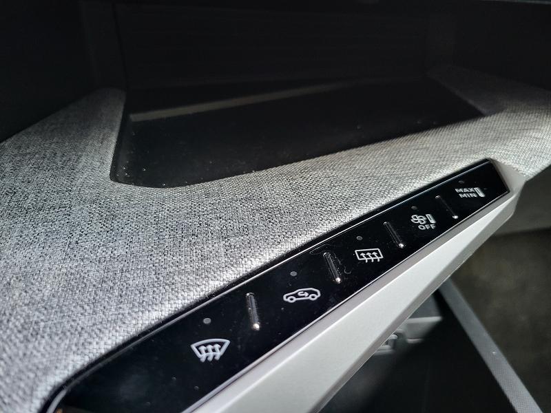 • Planche de bord moussée avec décor tissu RIMINI chiné et alcôve Graphène façade et aérateurs Noir laqué avec décor Gris